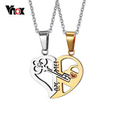 Vnox Key & Lock Heart Shape Necklace for Women Men Pendant Couple Necklaces Lover Friendship Jewelry 2pcs/ sets