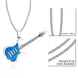 Vnox Trendy Guitar Necklace Pendant Free 24inch Chain Stainless Steel Punk Rock Music Jewelry