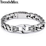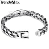 Trendsmax Mens Bracelet 316L Stainless Steel Biker Wristband Vintage Totem Curved Edging Curb Chain HB10
