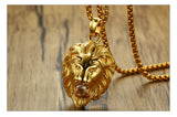 Vnox Punk Lion Head Pendant for Men Necklace Wild Tough Animal Shape Gold Color Stainless Steel Rocky Male Jewelry 24" Box Chain