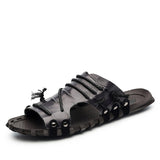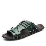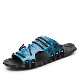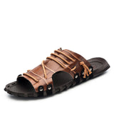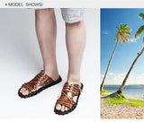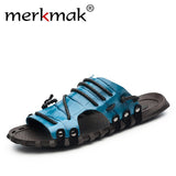 Merkmak 2017 New Arrival Men Summer Slippers Genuine Leather Beach Holiday Shoes Flat Slipper for Men Casual Daily Shoes