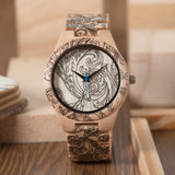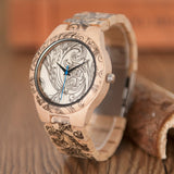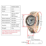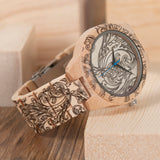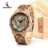 BOBOBIRD Tatto Print Wooden Watches Mens All Maple Wood Quartz Wristwatch in Wooden Box