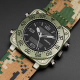INFANTRY Mens Quartz-watches Military Army Digital Sport Watches Camouflage Leather Square Watches Dual Core Relogios Masculinos
