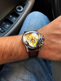 Item descriptions: *Brand new,men watch *Automatic mechanical movement *Ywllow dial,triangle dial & frame,red second hand *Three working subdials,date,day of week, 24 hours *Three buttons,the first button to adjust week,the second one to adjust time,the third one to adjust date,. *Daily Water Resistance,but not for shower and swimming.